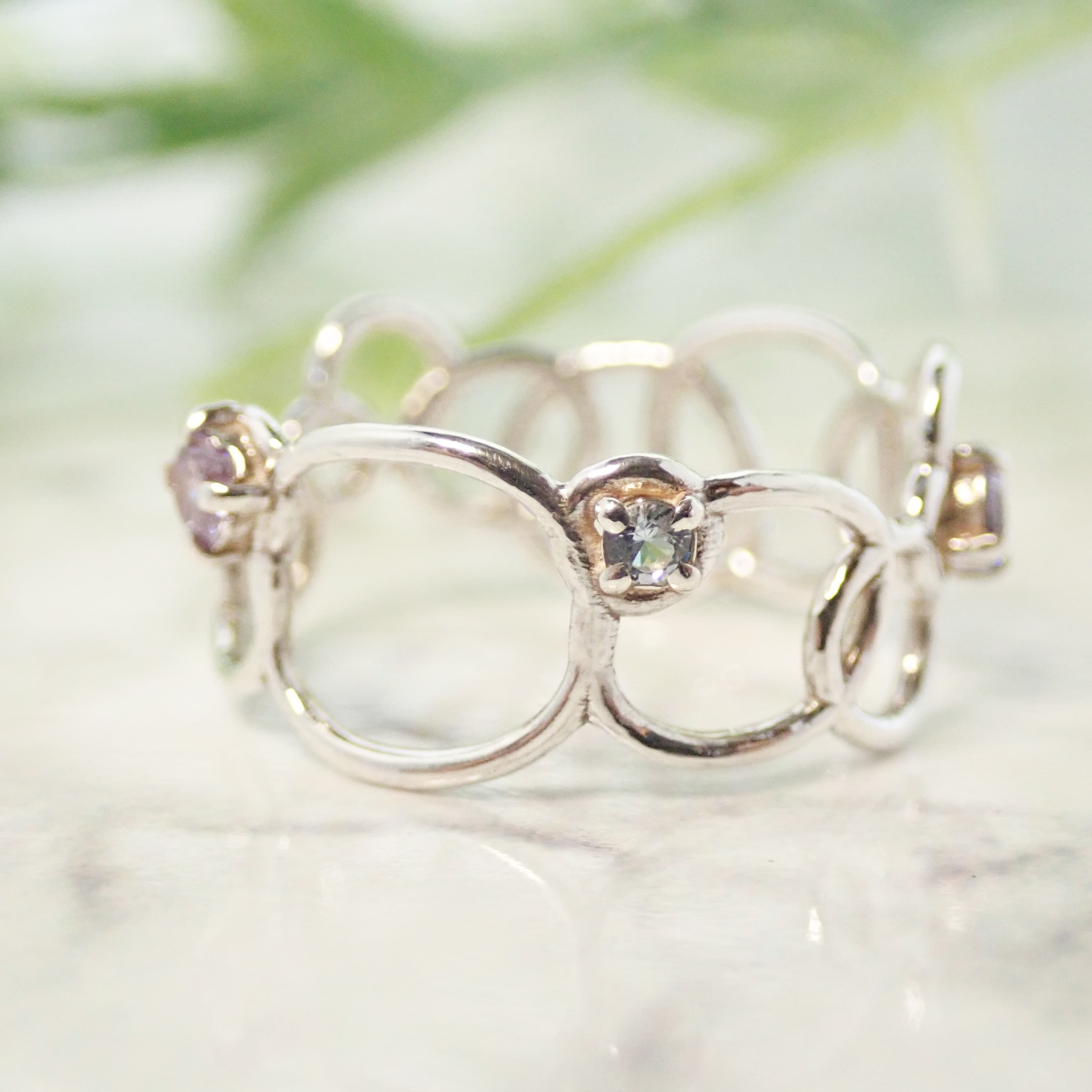 シルバーやゴールド 天然石や人工石を使用し 気持ちを明るくしてくれるデザインを意識しています